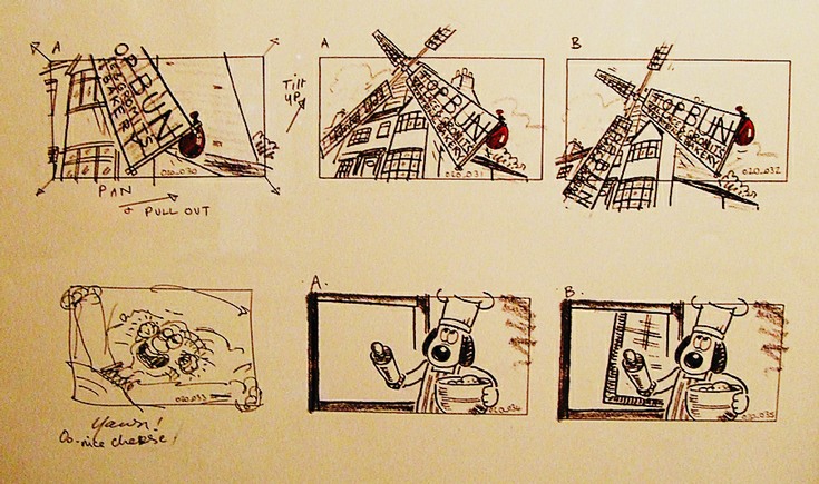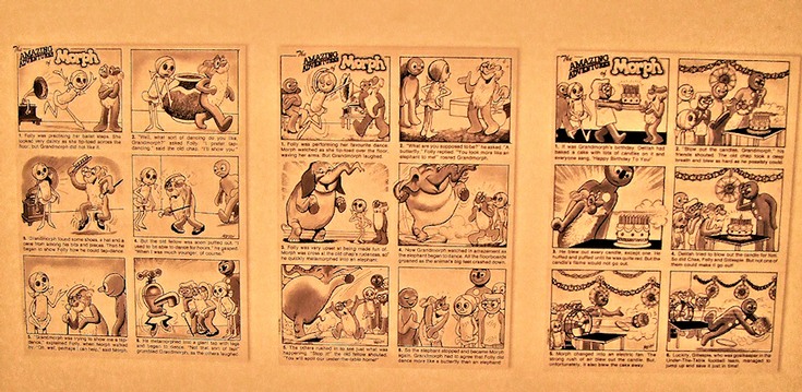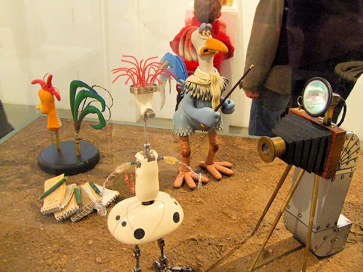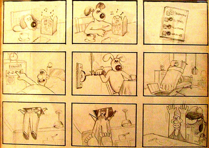 Photographs of models of Wallace and Gromit, Morph etc. together with story boards, and sets.