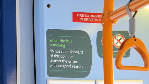 "Don't distract the driver without good reason". "Excuse me driver. I've damaged my fist on your notice. Is that a good enough reason to distract you?"