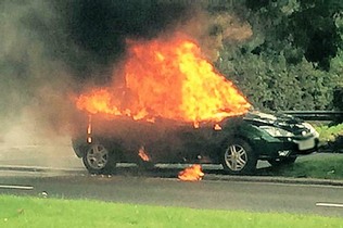Then on the northbound carriageway a car was on fire with two fire engines in attendance. Strange way of putting it. Sounds like fire engines are bridesmaids.