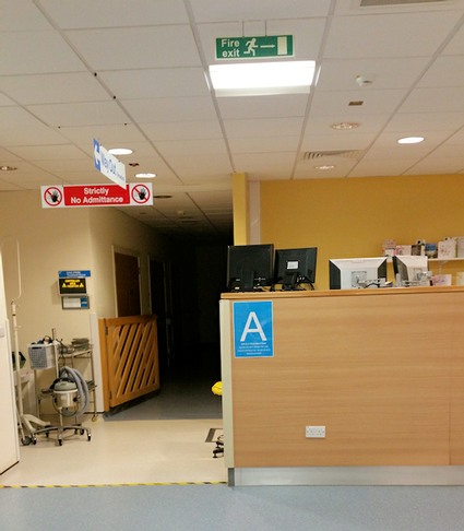 Note the water fountain far right, where many a bladder was filled to bursting many a day, just half an hour before treatment time, which may be delayed just long enough to amuse the radiotherapists . . . but not the cleaners.