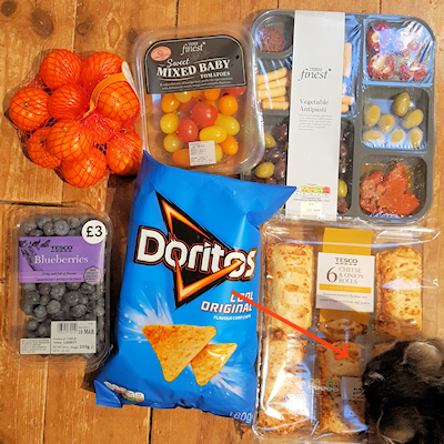 Note the cat scrutinising the acceptability of the items on the right. She eventually gave them the all clear, after being promised first refusal.