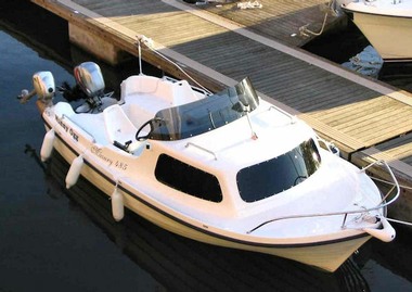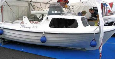 Careful now. Single handed sailing comes with loads of pitfalls, especially if you're not too young anymore. And finding crew at short notice when you don't know anyone is a bit optimistic. So, after weighing pros, cons and anchor, it made sense to look for a small motor cruiser. There was nothing cheap and nothing small. Medium disappointment set in as we made our way to the exit. Then, in front of us, hidden away in a cheap exhibition backwater, was a small white Polish Cabin Cruiser, complete with affordable price tag! Oh and, by the way, there's no such thing as luck. Most of the time.