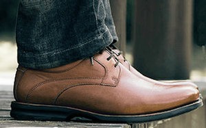 distinctive pair of shoes. Brown leather with new-
