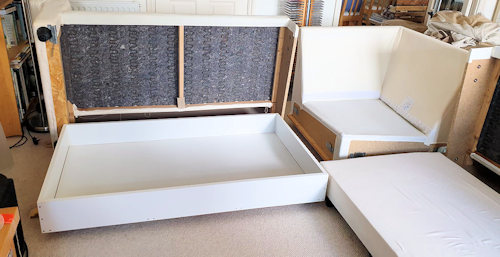 Right said Fred, remove all the cushions, all 11 of ‘em from the frame below . . . . take off the cover, wasn’t there another? We were getting nowhere and so . . I . . had a cup o’ tea.